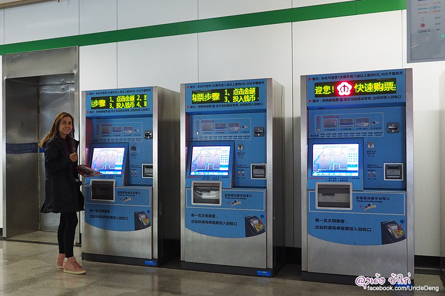 การเดินทาง : รถไฟใต้ดินสะดวกและไม่แพง คนละ 2 หยวน เท่านั้นจากโรงแรมที่ลุงเด้งป้าไก่พักไปยังสถานที่ท่องเที่ยวต่างๆ มีตู้หยอดเหรียญซื้อตั๋วสามารถเลือกเป็นภาษาอังกฤษได้ไม่มีปัญหา