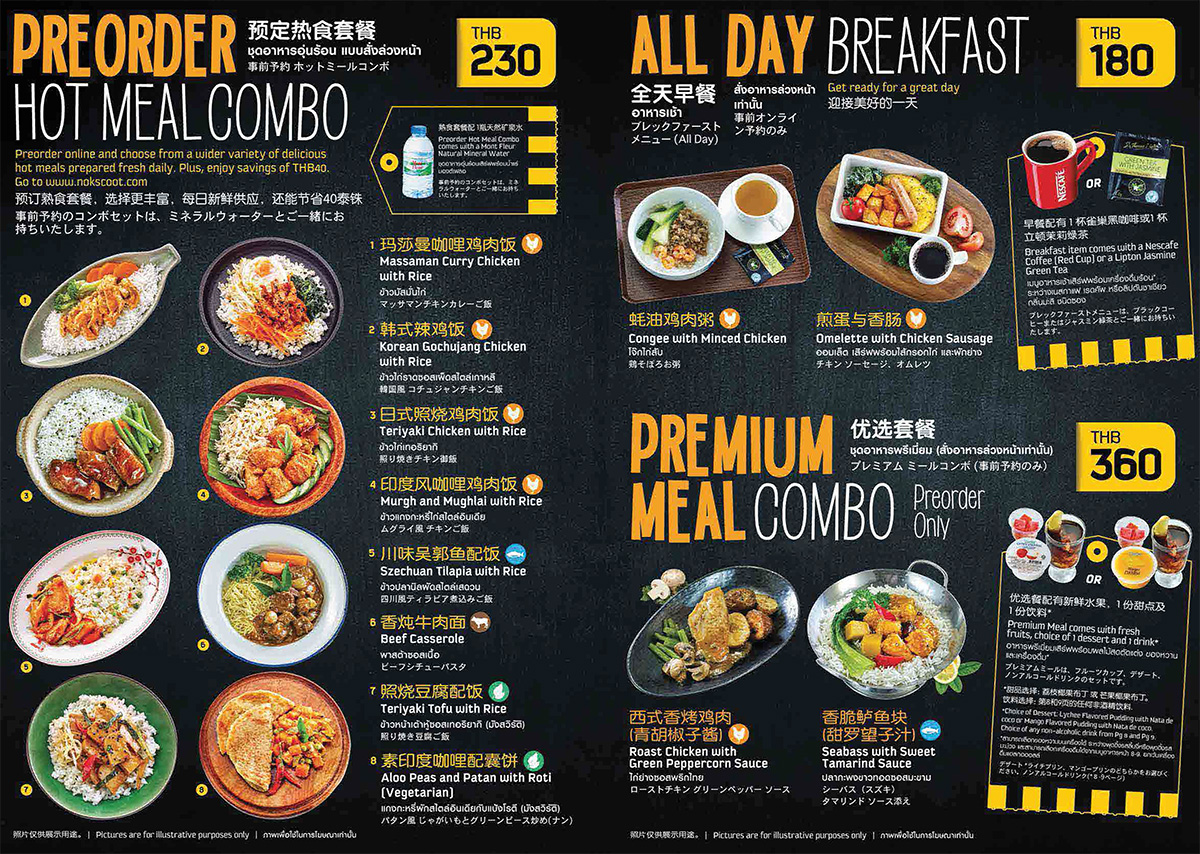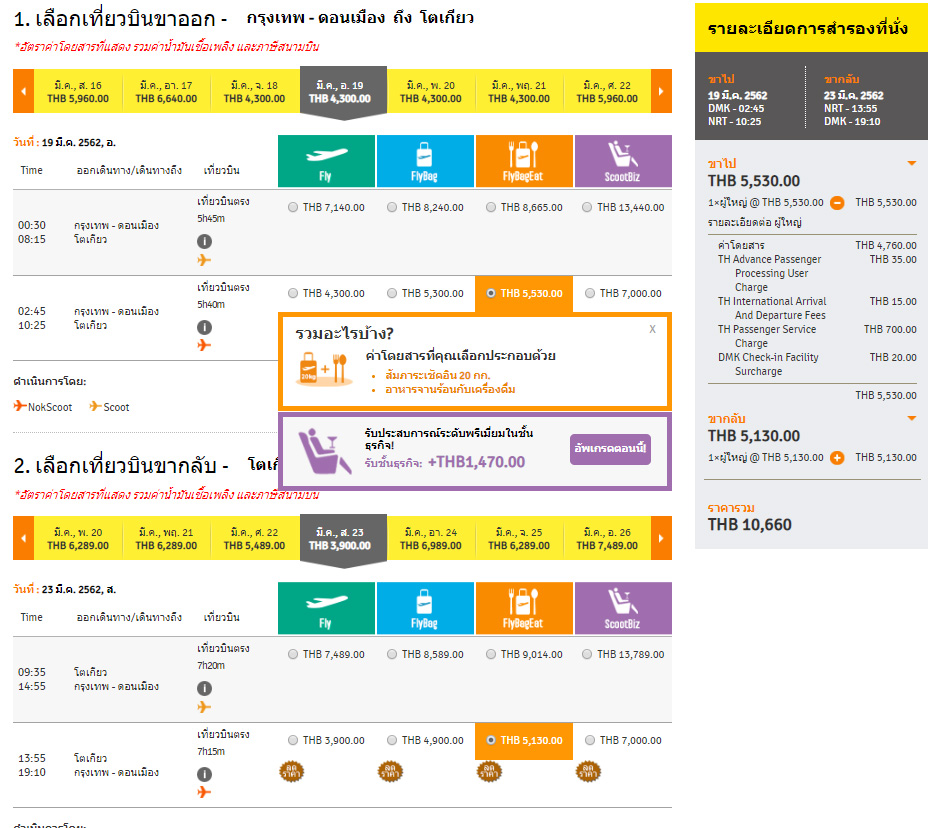 อย่างที่บอกไปตอนแรก ลุงเด้งป้าไก่ ถ้าบินกับ NokScoot จะเลือก FlyBagEat หรือไม่ก็ ScootBiz เพราะจะรวมอาหาร+เครื่องดื่ม ไว้ด้วยระหว่างการเดินทาง เราสามารถทำรายการเลือกอาหารได้ตอนที่จองตั๋วได้เลย หรือกลับมาเลือกอีกครั้ง อย่างน้อย 48 ชั่วโมงก่อนบิน