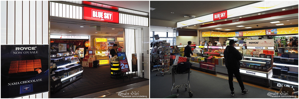 ลุงเด้งป้าไก่ ... เราไม่ได้ซื้อที่ ร้านAkihabara เพราะคิวยาว คนเยอะมาก เราเดินต่อ มาที่หน้า Gate จะมีร้านเล็กๆ 2 ร้านคือ Souvenir ซึ่งมีอยู่ถึง 2 ร้าน และ Blue Sky ซึ่งก็มี 2 ร้าน ไม่มีคิว เลือกซื้อสินค้าง่ายๆ ไม่ต้องแย่งกับใคร จ่ายเงินก็ไม่มีคิว