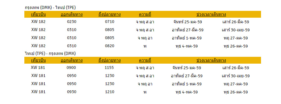 ปรับปรุงข้อมูล 17 พฤษภาคม 2559 (ตารางบินอาจมีการเปลี่ยนแปลง)
