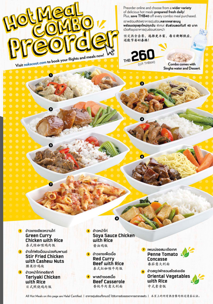 ตัวอย่างอาหารบนเครื่อง HOT MEAL COMBO PREORDER ในราคา 260 บาท