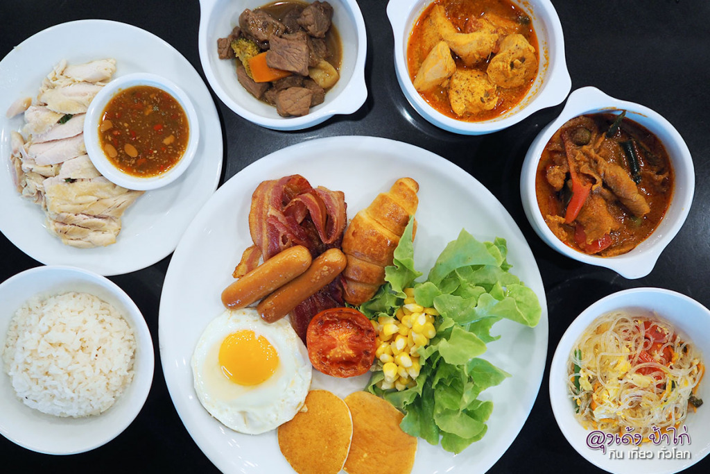 บุฟเฟ่ต์อาหารเช้า แบบ นานาชาติ ... แต่ก็ยังเน้นความเป็นไทย คือมีข้าวมันไก่ แกงเผ็ด ผัดๆ ต้มๆ ทอดๆ ถูกปากคนไทยแน่นอน