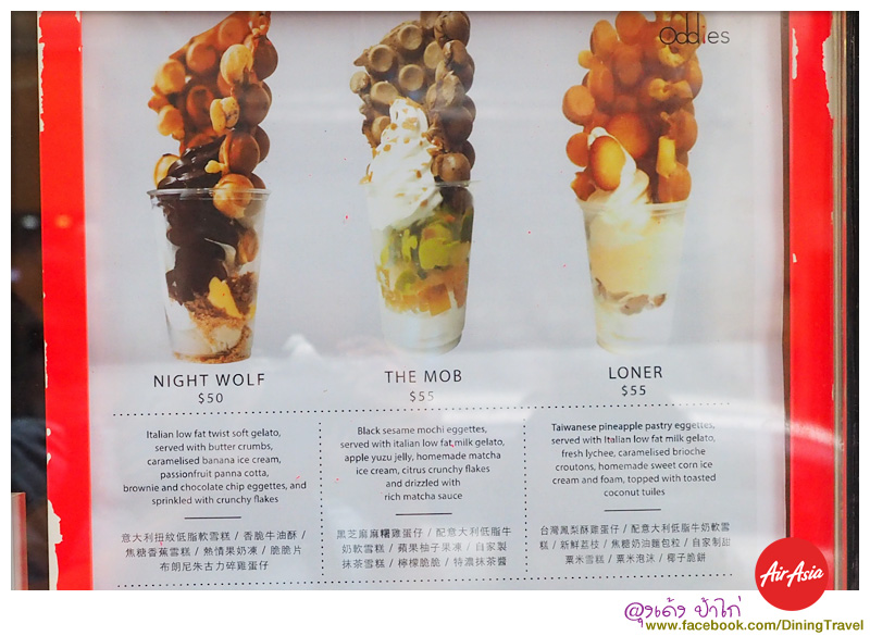 Oddies นำเสนอ วาฟเฟิลบอล (gai daan zai) ขนมขึ้นชื่อสัญชาติฮ่องกง มาผสมผสานกับไอศกรีมโฮมเมด สไตล์ เจลาโต้ "Gelato Parfaits" ที่เนียนนุ่มประดับด้วย ของหวานอีกนาๆ ชนิด ตั้งอยู่บนถนน Burrows Street เป็นร้านเล็กๆ สำหรับซื้อกินนอกร้านเท่านั้น เน้นนะครับว่า.. ร้านนี้ หยุดวันจันทร์