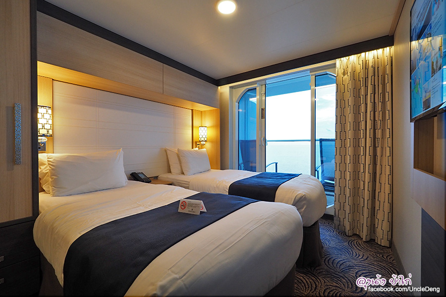 ห้องพักของลุงเด้งป้าไก่ : Superior Ocean View Staterooms with Balcony เป็นห้องพักแบบมีระเบียง ให้ความหรูหราระดับโรงแรม 4 ดาว
