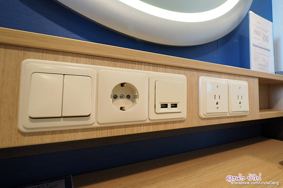 ทุกห้องพักได้จัดเตรียมที่เสียบปลั๊กไฟ และ ช่องเสียบ USB ให้แล้ว เราต้องเตรียม "Universal Plug Travel Adapter หัวปลั๊ก เอนกประสงค์" ไปเอง 1 - 2 ชิ้น