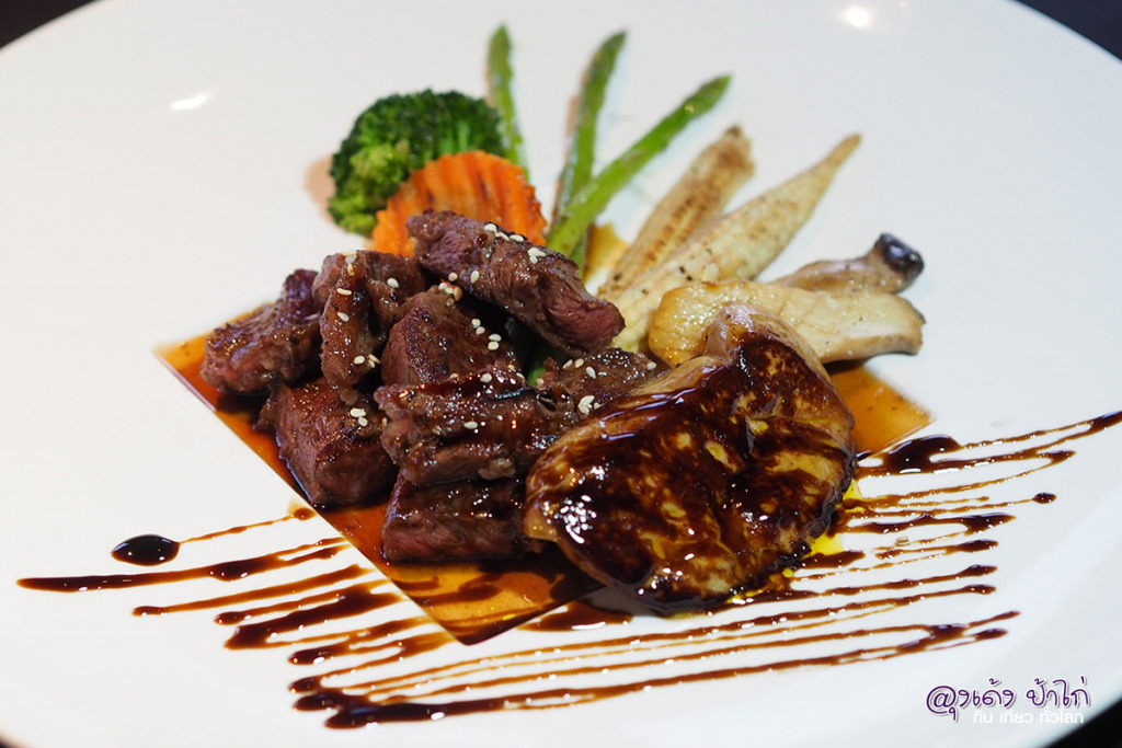 เนื้อออสเตรเลียนวากิว แทรกมันระดับ 4 เลือกความสุกได้ เสิร์ฟพร้อมตับห่านชิ้นโต