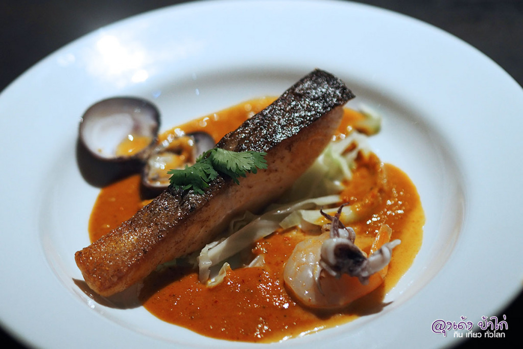 ปลาแซลมอนย่าง ซอสต้มยำทะเล