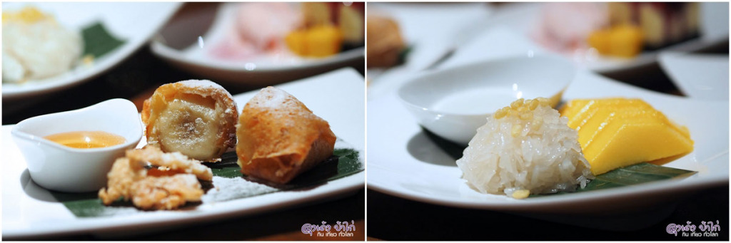 และนี่คือความอร่อยแบบตะวันตก บ้านเรานี่แหละ - กล้วยหอมทอด โรยด้วยมะพร้าวกรอบ ราดน้ำผึ้ง และ ข้าวเหนียวมะม่วง ( ข้าวเหนียวมูลอร่อย - กล้วยทอดก็เยี่ยม) - ส่วนตัวชอบของหวานแบบไทยมากกว่า