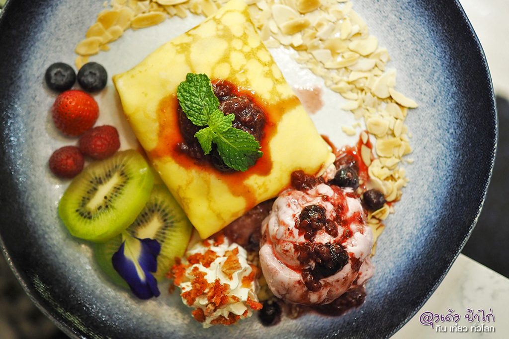 ปิดท้ายมื้อนี้ด้วย... Cream Chese Berry Soft Crepe จานนี้ 260.- บอกเลยว่าอร่อยมากๆ ตัวเครปนุ่มนวล เสิร์ฟมาพร้อมกับไอศครีมสตรอเบอรี่ และ ผลไม้สด ได้ความกรุบกรอบของอัลมอน และ สตรอเบอรี่อบแห้ง