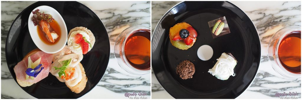 กลับมาที่ Afternoon Tea จะมี 2 ทางเลือก นะครับ ขึ้นอยู่กับว่า เราชอบ ของคาว และ ของหวาน ชุดไหน ราคาเท่ากัน ชุดละ 450.- ในเมนู ระบุว่า สำหรับ 2 คน แต่ถ้าไป 3 คน จะแชร์กัน ทางร้านก็ไม่ว่าอะไร