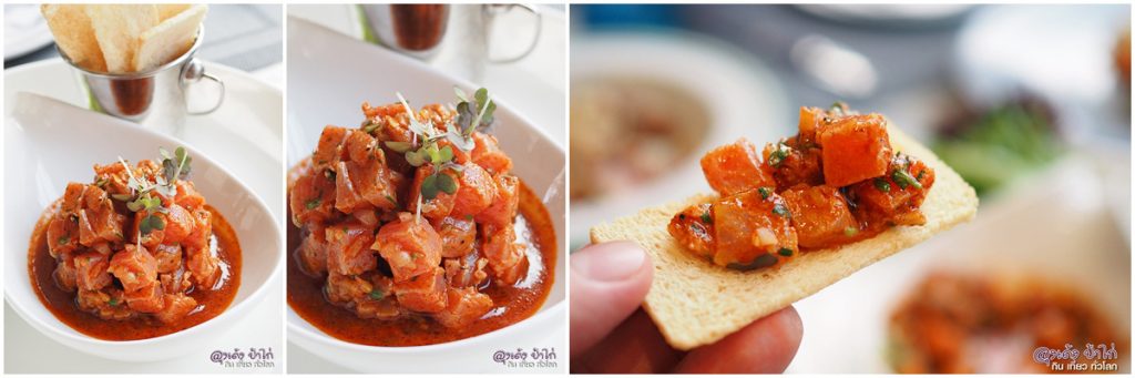 จานนี้ เป็นจานที่ ลุงเด้งป้าไก่ ชอบที่สุด ... Tuna Tar Tare ราคา 250.- เชื่อมั๊ยละ! อร่อยจนต้องไปถามเชฟ ว่า "ทำยังไง?" เพราะรสชาติมีหลายมิติเหลือเกิน จะไทยก็ไม่ไทย จะญี่ปุ่นก็ไม่ใช่ จะแมคซิกัน จะ อเมริกันก็ไม่เชิง
