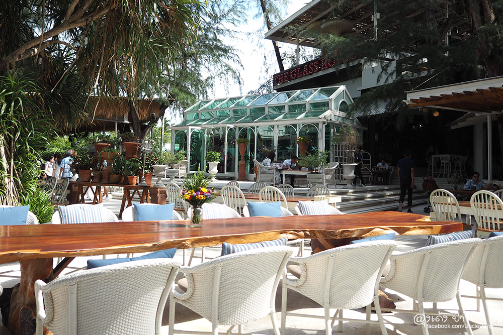 The Glass House จุดเด่นไม่ได้อยู่ที่ห้องเรือนกระจก แต่เป็นที่นั่งชายหาด ที่ทุกโต๊ะหันหน้าออกทะเล