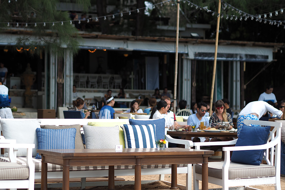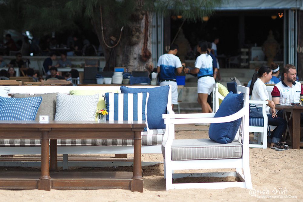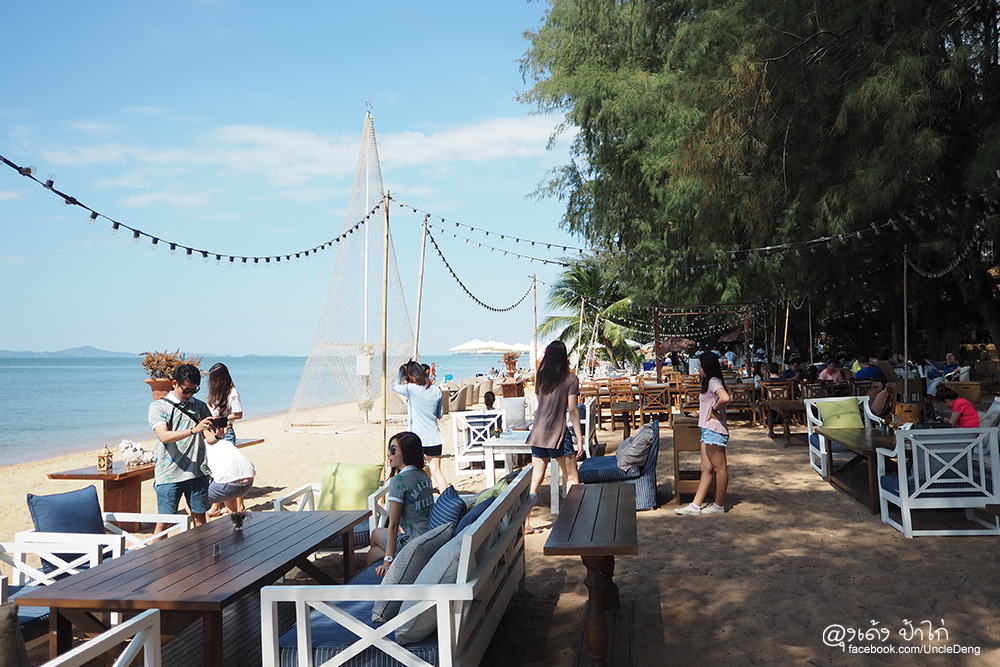 ลุงเด้งป้าไก่ ไปถึงที่ร้าน 10:45 ก่อนร้านเปิด 15 นาที ก็มีลูกค้ามาจับจองโต๊ะที่ชายหาดกันแล้ว