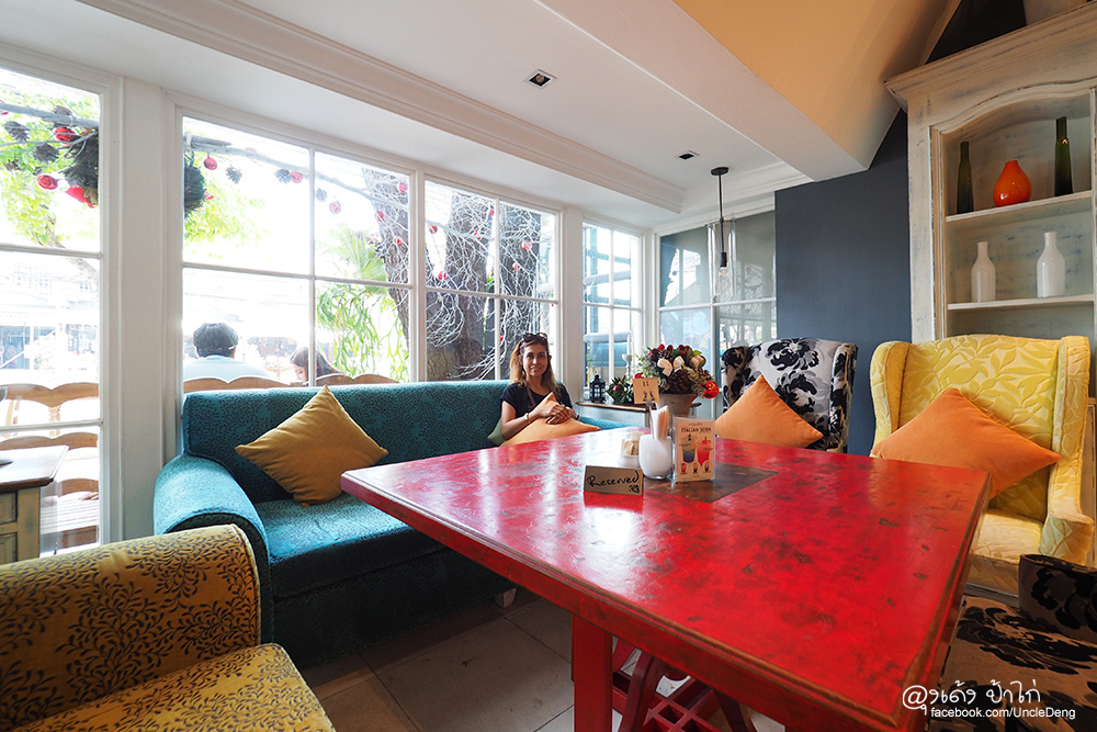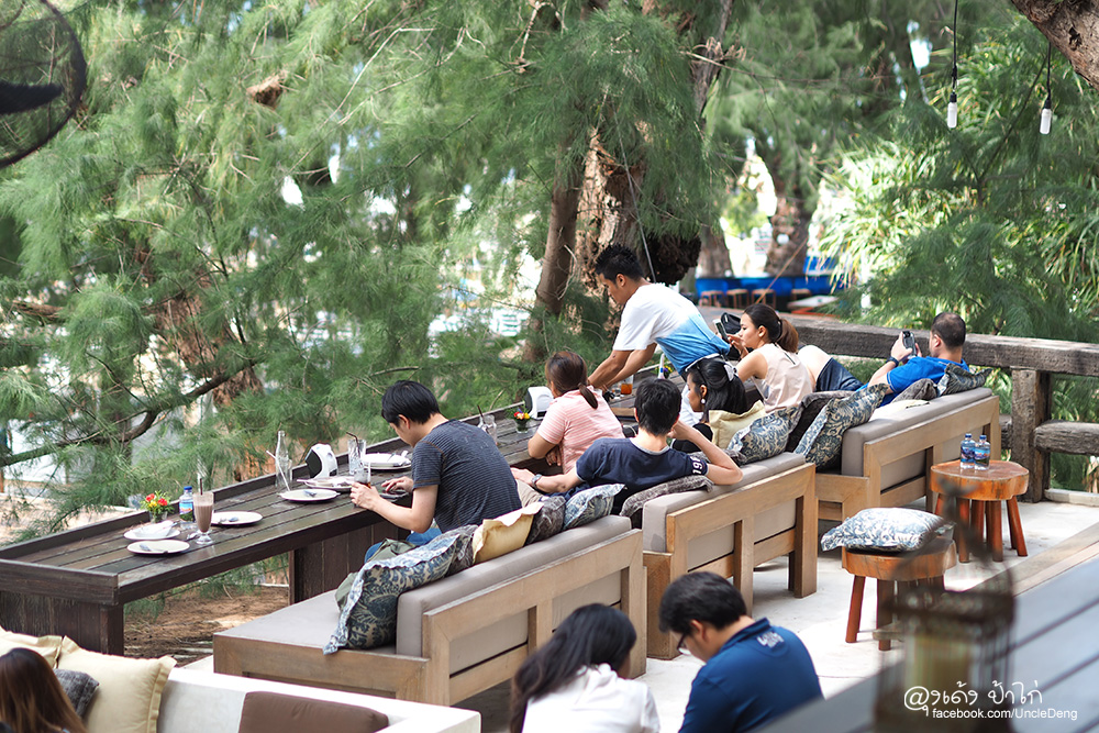 ภายในร้านบรรยากาศดี มีที่นั่งหลายมุม และแน่นอนที่สุด ทุกโต๊ะหันหน้าออกทะเล
