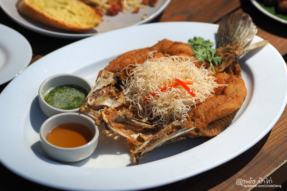 ปลากะพงทอดน้ำปลา 550.- ความอร่อยระดับมาตรฐานทั่วไป แต่ข้อดีคือแยกน้ำราด (ซอสน้ำปลา) มาต่างหาก ปลาทอดจะได้ไม่นิ่ม ส่วนน้ำจิ้มซีฟู้ดก็แซ่บสะใจ