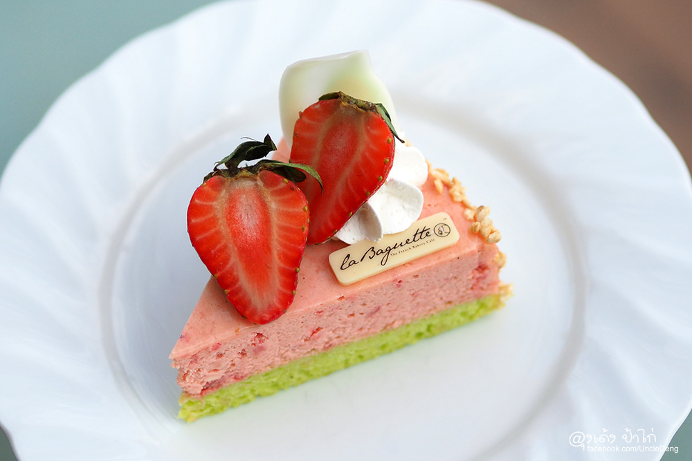 ปิดท้ายมื้อด้วย Strawberry Cheese Cake เป็นหนึ่งใน Small Cake Favorite ของทางร้าน ชิ้นละ 140 บาท