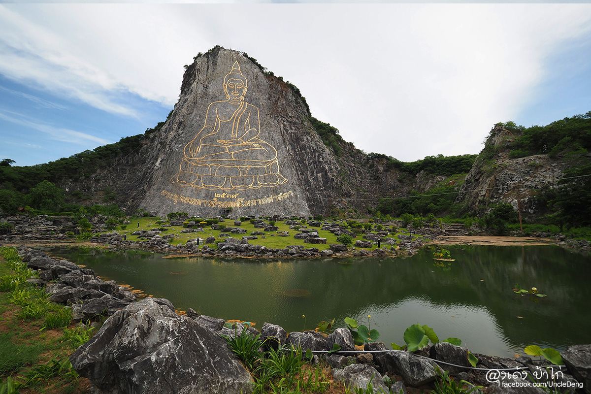 พระพุทธรูปมีขนาดความสูงรวมฐานบัวถึงบัลลังค์ 130 เมตร หน้าตักกว้าง 70 เมตร แกะสลักด้วยเลเซอร์บนหน้าผาสูงเด่นตระหง่านเป็นที่สะดุดตาแก่ผู้มาเยือน ถูกสร้างขึ้นเพื่อถวายเป็นพระราชกุศลแด่พระบาทสมเด็จพระเจ้าอยู่หัวรัชกาลที่9 ในวันที่ 9 มิถุนายน 2539 แล้วเสร็จ ในปี 2543 เนื่องในวโรกาสทรงครองสิริราชสมบัติครบรอบ 50 ปี และทรงพระราชทานนามว่า “พระพุทธมหาวชิรอุตตโมภาสศาสดา” ซึ่งมีความหมายว่า “พระพุทธเจ้าทรงเป็นศาสดาที่รุ่งเรืองสว่างประเสริฐ ดุจดังมหาวชิระ”