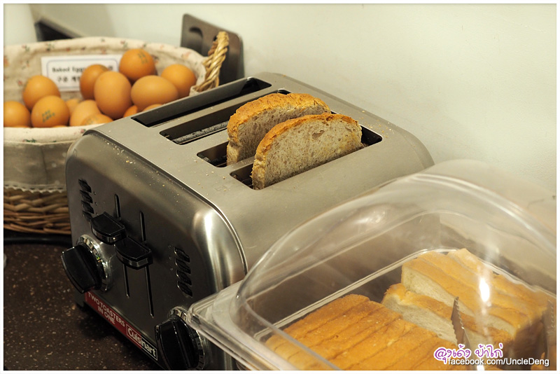 พื้นที่ส่วนกลาง ตอนเช้า จะมี ขนมปัง แยม เนยถั่ว ชา กาแฟ ให้บริการฟรี ทุกวัน