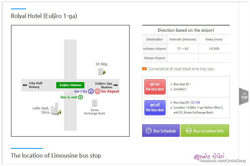 การเดินทาง : สถานี Euljiro 1 -ga ทางออก 5 (เดิน 5 นาที ถึงโรงแรม)