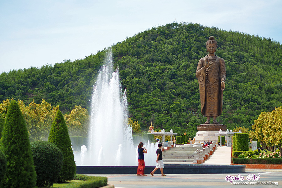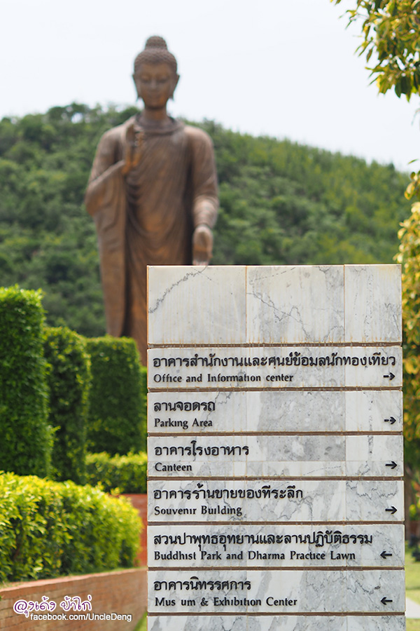 10 พระพุทธเมตตาประชาไทยไตรโลกนาถคันธารราฐอนุสรณ์ นามนี้มีความหมายสำคัญ 3 ด้าน - พระพุทธที่เป็นที่พึ่งของประชาชนไทยและชาวโลก - พระพุทธที่เป็นที่พึ่งของ 3 โลก ได้แก่ โลกสวรรค์ โลกมนุษย์ และยมโลก - พระพุทธรูปที่สร้างขึ้นเพื่อรำลึกพระพุทธรูปแห่งบาบิยัน ประเทศอัฟกานิสถาน หมายเหตุ... พระพุทธรูปแห่งบาบิยัน ประเทศอัฟกานิสถาน ถูกกลุ่มตาลีบันทำลายด้วยระเบิดไดนาไมต์เมื่อเดือนมีนาคม พ.ศ. 2544 การกระทำครั้งนี้นานาประเทศได้ประณามการกระทำของกลุ่มตาลีบันอย่างรุนแรง เพราะหมู่พระพุทธรูปนี้มิใช่สมบัติของบุคคลใดบุคคลหนึ่งแต่เป็น "มรดกโลก" อันเป็นสาธารณสมบัติและความภาคภูมิใจของคนทั้งโลก 07 ระพุทธรูปปางคันธารราฐ หรือ ปางขอฝน มีพุทธลักษณะพระอิริยาบถยืนตรง ทรงผ้าวัสสิกสาฎก พระหัตถ์ขวายกขึ้นเสมอพระอุระ หรืออก พระหัตถ์ซ้ายหงายรองรับน้ำฝน ตามตำนานในสมัยพุทธกาล...มีช่วงเวลาหนึ่งฝนแล้งติดต่อกันเป็นเวลานาน ด้วยพระบารมีของพระพุทธเจ้าทรงบันดารให้เกิดฝนช่วยในพื้นที่แห้งแล้งกลับมาชุ่มชื่นอีกครั้ง 09“พุทธอุทยาน” แวดล้อมด้วยพันธุ์ไม้ในพุทธประวัติ และสวนสวยเขียวขจี มีภูเขาตั้งอยู่เบื้องหลังองค์พระเป็นการสร้างเสริมระบบนิเวศน์และสภาพแวดล้อมที่ดีให้แก่พื้นที่ 25 อาคารนิทรรศการ ภายในจัดแสดงในหัวข้อ "อนุสรณ์แห่งการตื่นรู้" เพื่อเป็นแรงบันดาลใจให้ผู้คนได้เข้าถึง "หัวใจของพุทธะ" เพราะเมื่อเราเข้าใจในคำสอนของพระพุทธองค์ พระพุทธก็จะคงอยู่คู่กับเราไปตลอดเวลา 26นิทรรศการแบ่งออกเป็น 4 โซน โซนที่ 1 พระพุทธเมตตาประชาไทยไตรโลกนาถคันธารราฐอนุสรณ์ โซนที่ 2 การเดินทางของพระพุทธศาสนา โซนที่ 3 "เจติยะ" สิ่งที่ควรบูชา โซนที่ 4 คบเพลิงแห่งธรรม ในการเข้าชมจะมีวิทยากรพาชมวันละ 7 รอบ โดยจะพาไปยังโซนต่างๆ พร้อมคำบรรยาย โดยจะใช้ประมาณ 40-60 นาที บริการฟรีไม่เสียค่าใช้จ่าย 48 28รูปหล่อ องค์สมเด็จพระมหาธีราจารย์ 37การสร้างพระพุทธเมตตาฯ เป็นการท้าทายทางวิศวกรรม ได้มีการการคำนวณและทดสอบความมั่นคงและแข็งแรงทั้งวัสดุที่ใช้ในการก่อสร้าง และผ่านการทดสอบลมพายุและแผ่นดินไหวที่รุนแรงที่สุดในรอบพันปี จากสถาบันเทคโนโลยีแห่งเอเชีย (AIT) โดยโครงสร้างขององค์พระสามารถยืนเด่นเป็นสง่าได้ยาวนานถึงพันปี 49สวนป่าพุทธอุทยานและนิทรรศการกลางแจ้ง - กำเนิดมหาโพธิ - ชีวิตคืออะไร : ความสุขที่แท้จริงคือสิ่งใด - ค้นพบความจริงของชีวิต : ค้นพบการตื่นรู้ - ไตร่ตรองและทบทวน - จากหน่อแรก เจริญงอกงาม และแผ่ขยายร่มเงา - มหาโพธิสิ้นอายุขัย 15ภายในพุทธอุทยานยังมีบริการให้เช่ารถจักร