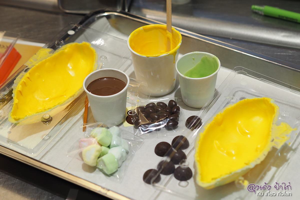 อุปกรณ์ต่างๆ ที่สำหรับกิจกรรมในครั้งนี้ ทุกอย่างเป็นช็อกโกแลต กินได้ทั้งหมด เริ่มตั้งแต่การทำเปลือกเมล็ดโกโก้ แล้วตกแต่งช็อกโกแลตแต่ละชิ้น แล้วบรรจุลงในเมล็ดโกโก้