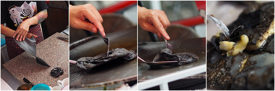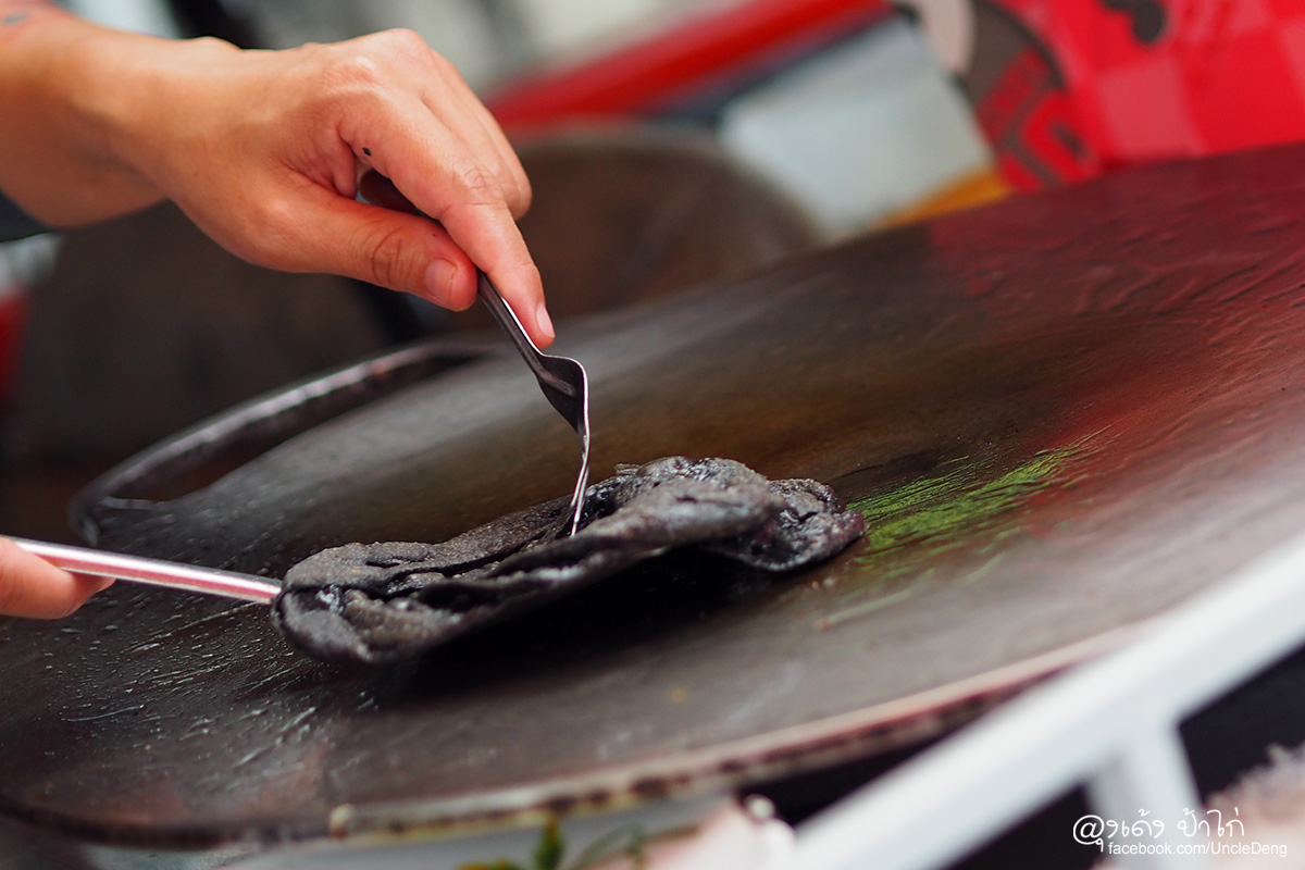 โรตีชาร์โคลใส่กล้วย ราคา 45 บาท (ใช้แป้ง 2 ก้อน)