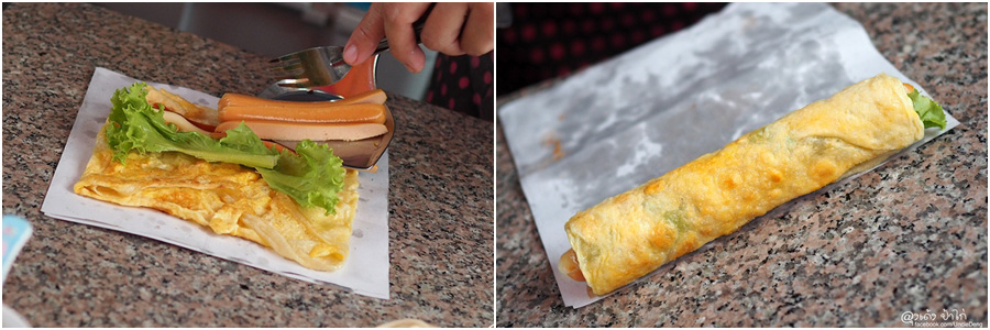 โรตีซูชิ ราคา 45 บาท จัดเป็นคำๆ ให้ความแปลกใหม่ อร่อยด้านในห่อด้วยไส้กรอก ราดซอสมะเขือเทศ กับ มายองเนส ม้วนแล้วตัดเป็นคำๆ รูปร่างเหมือนซูชิ อร่อย กินง่าย เข้ากันเป็นอย่างดี