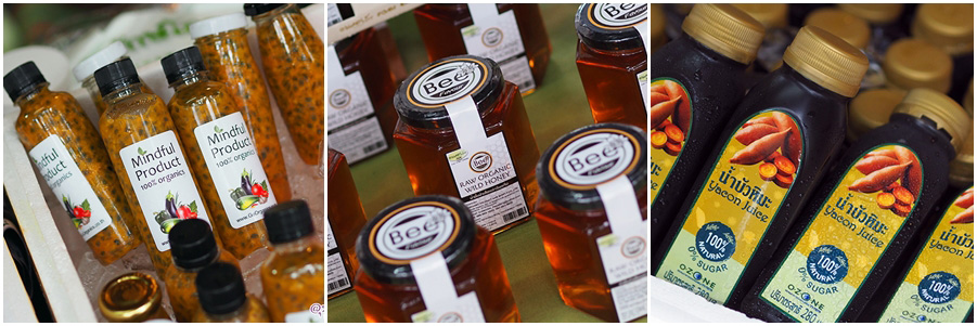 ถ้าจากจุดลงทะเบียนรับหนังสือ 70 เส้นทางตามรอยพระบาท จะเป็นโซนร้านค้าผลิตภัณฑ์อินทรีย์ ของเครือข่ายเกษตรกรและผู้ประกอบการอินทรีย์จากทั่วประเทศ ส่วนนี้เราจะได้รู้จักสินค้าผลิตภัณฑ์อินทรีย์มากมาย เช่นแชมพู สบู่ สมุนไพร เห็ดอินทรีย์ ชาลำใย ชาลิ้นจี่ น้ำผึ้ง ข้าวอินทรีย์นานาชนิด
