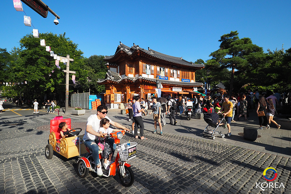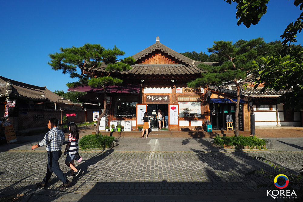 บรรยากาศในหมู่บ้านโบราณ (Jeonju Hanok village) ก็จะเป็นบ้านลักษณะแบบนี้ทั้งเมือง เนื่องจากชุมชนนี้มีข้อตกลงกันว่า ถ้าจะสร้างบ้าน สร้างอาคารใหม่จะต้องสร้างเป็นแบบบ้านโบราณเท่านั้น