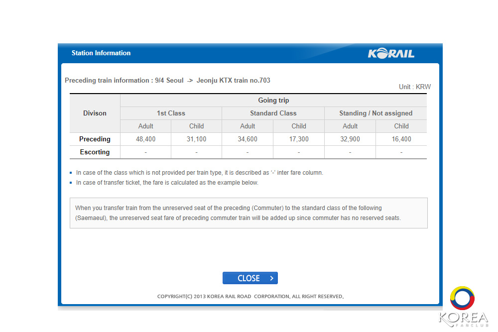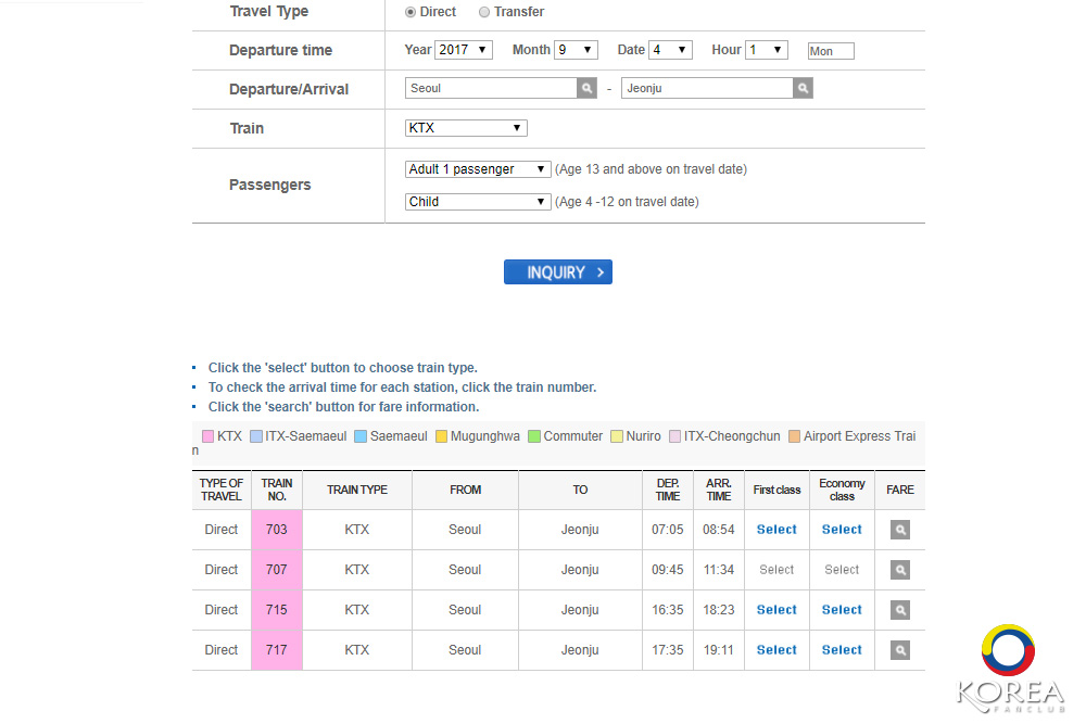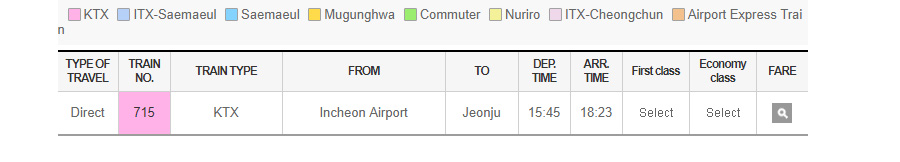 - ตรวจสอบสถานีที่ต้นทาง (Yongsan) และ สถานีปลายทาง (Jeonju)