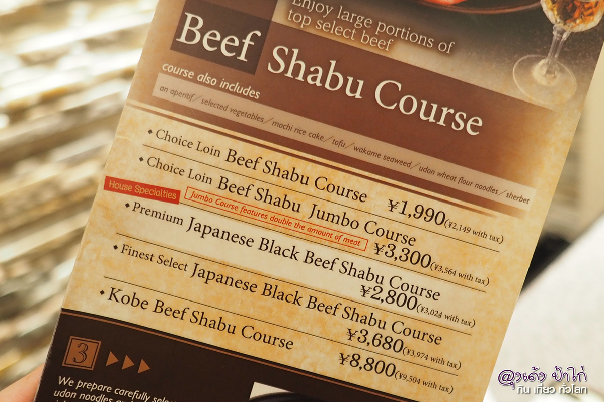 1 เนื้อวากิว (Beef Shabu Course) จานเล็ก 1,990 เยน / จานใหญ่ 3,300 เยน