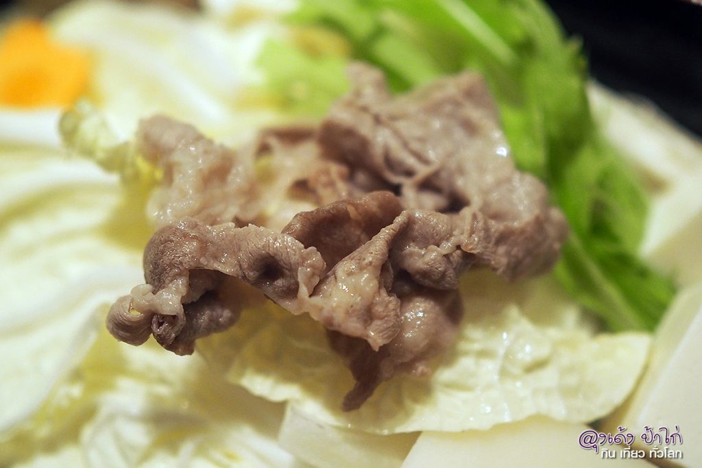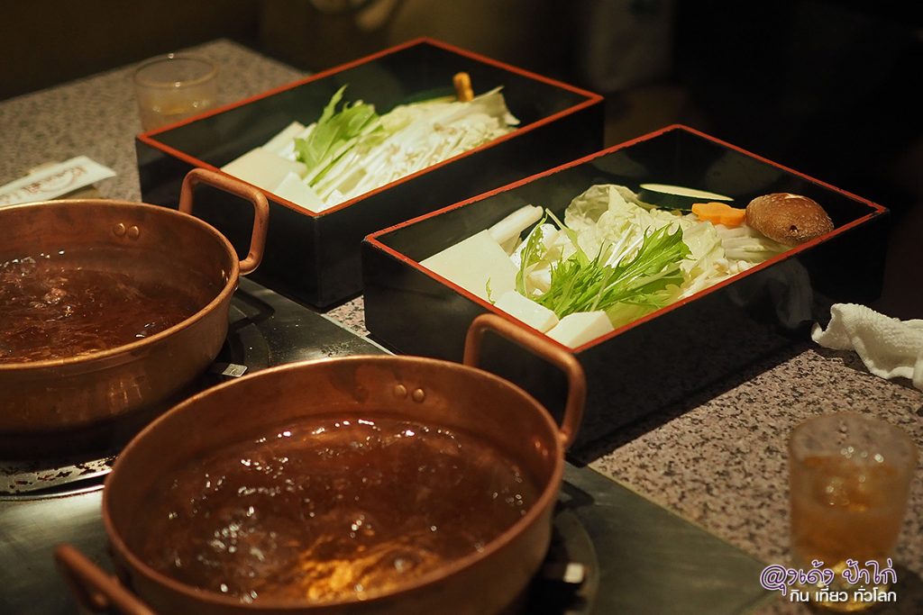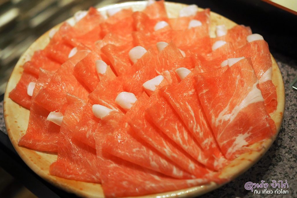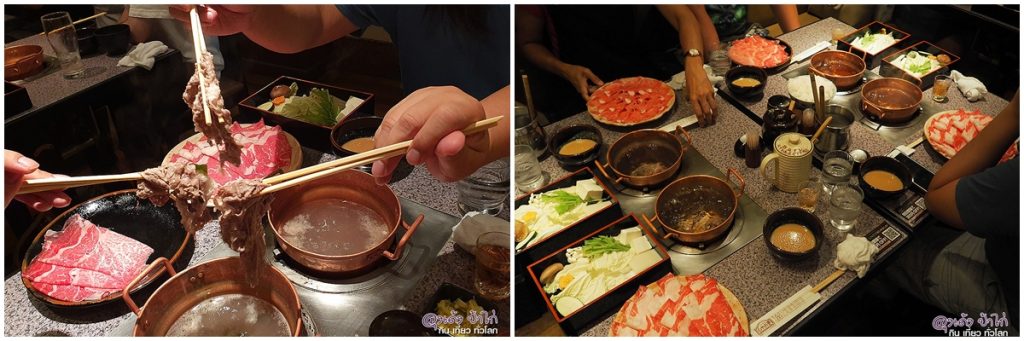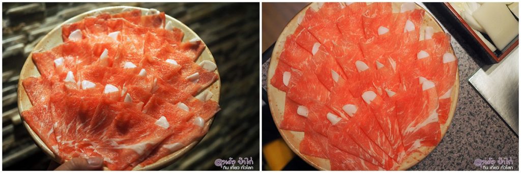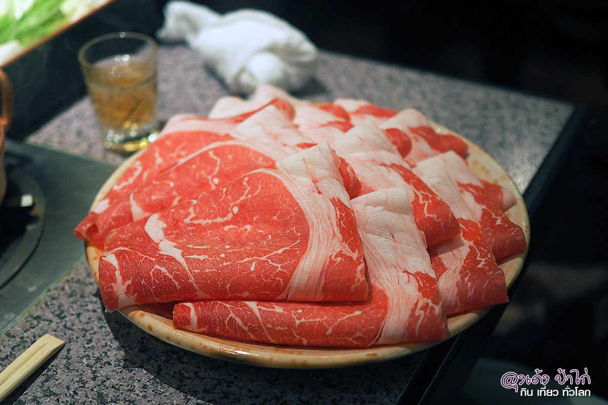 ลูกค้าแต่ละคน มีหม้อไฟส่วนตัว ในชุดจะมี เนื้อ 1 จาน + ผักสด 1 ถาด + อุด้ง 1 ถ้วย + ของหวาน (อุด้ง จะเสิร์ฟให้ก่อนจบมื้อ)