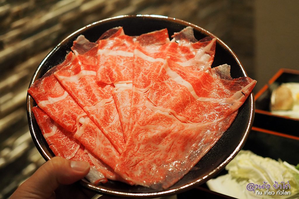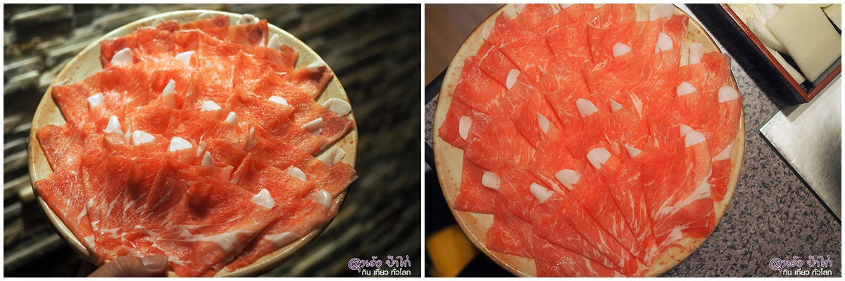 Beef Shabu Jumbo Course ราคา 3,300 เยน (จานใหญ่ ขนาด Jumbo) เนื้อแผ่นใหญ่ มันแทรก ลายสวย