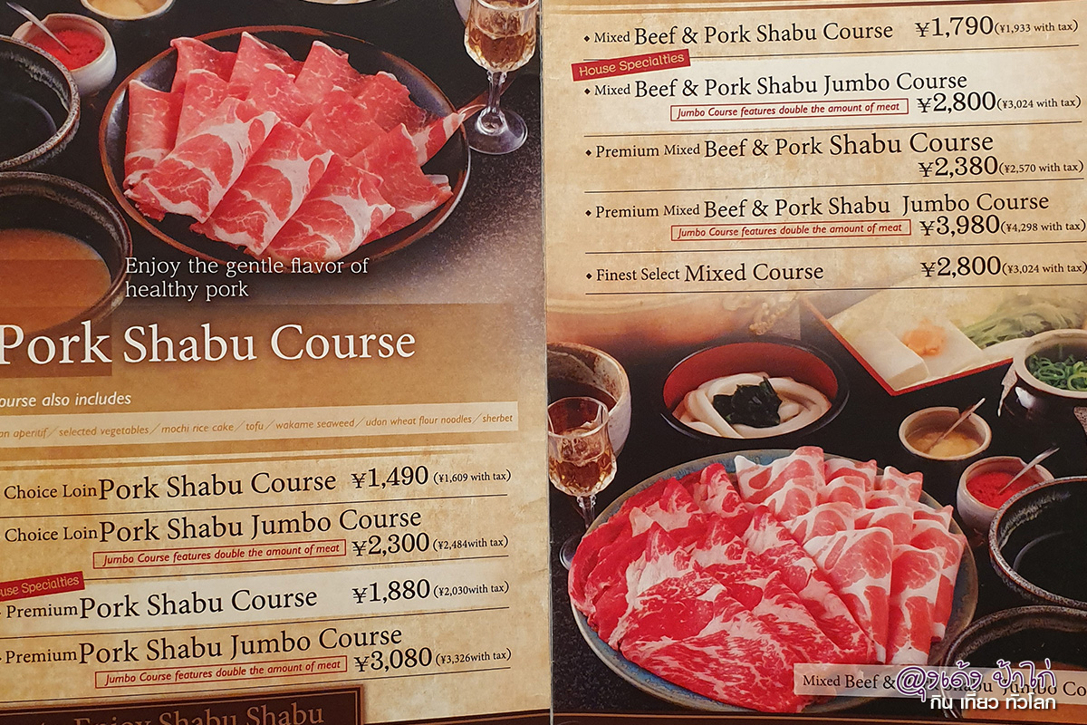 Pork Shabu Jumbo Course ราคา 2,300 เยน