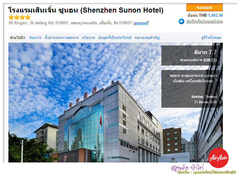 ลุงเด้ง ป้าไก่ พักที่ Shenzhen Sunon Hotel ระดับ 4 ดาว คืนละ 1,XXX เท่านั้น