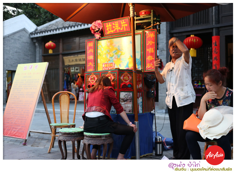 ค่าดูคนละ 10 หยวน เท่านั้น เราดูกัน 2 คนเลย อาแป๊ะ เล่าเรื่องเป็นภาษาจีน แบบงิ้ว มีกลอง ฉาบ ครบมือ