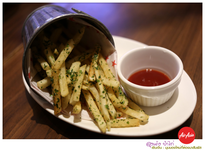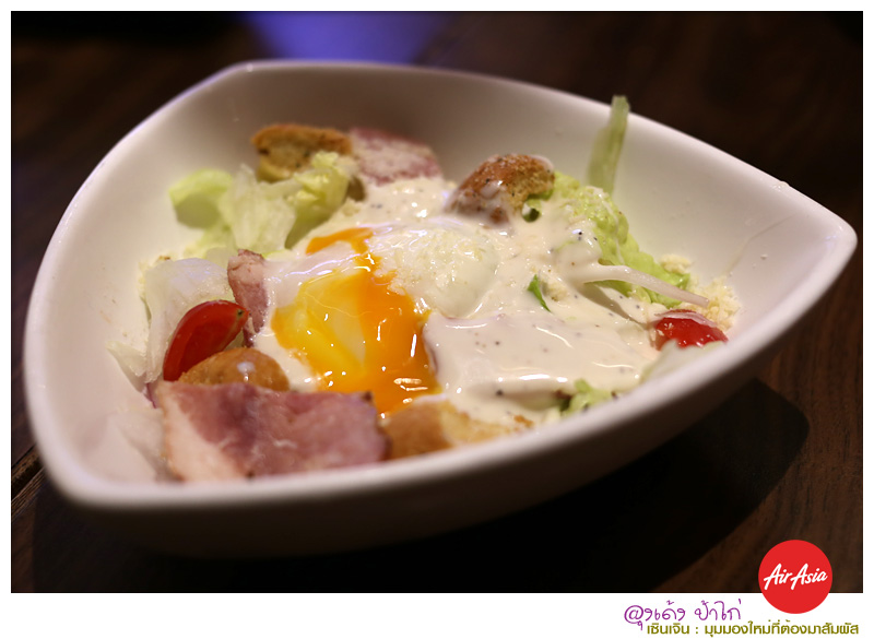 อาหารเรียกน้ำย่อย 3 อย่าง : Caesar Salad / Salmon, Tuna, Snapper Carpaccio / French Fries