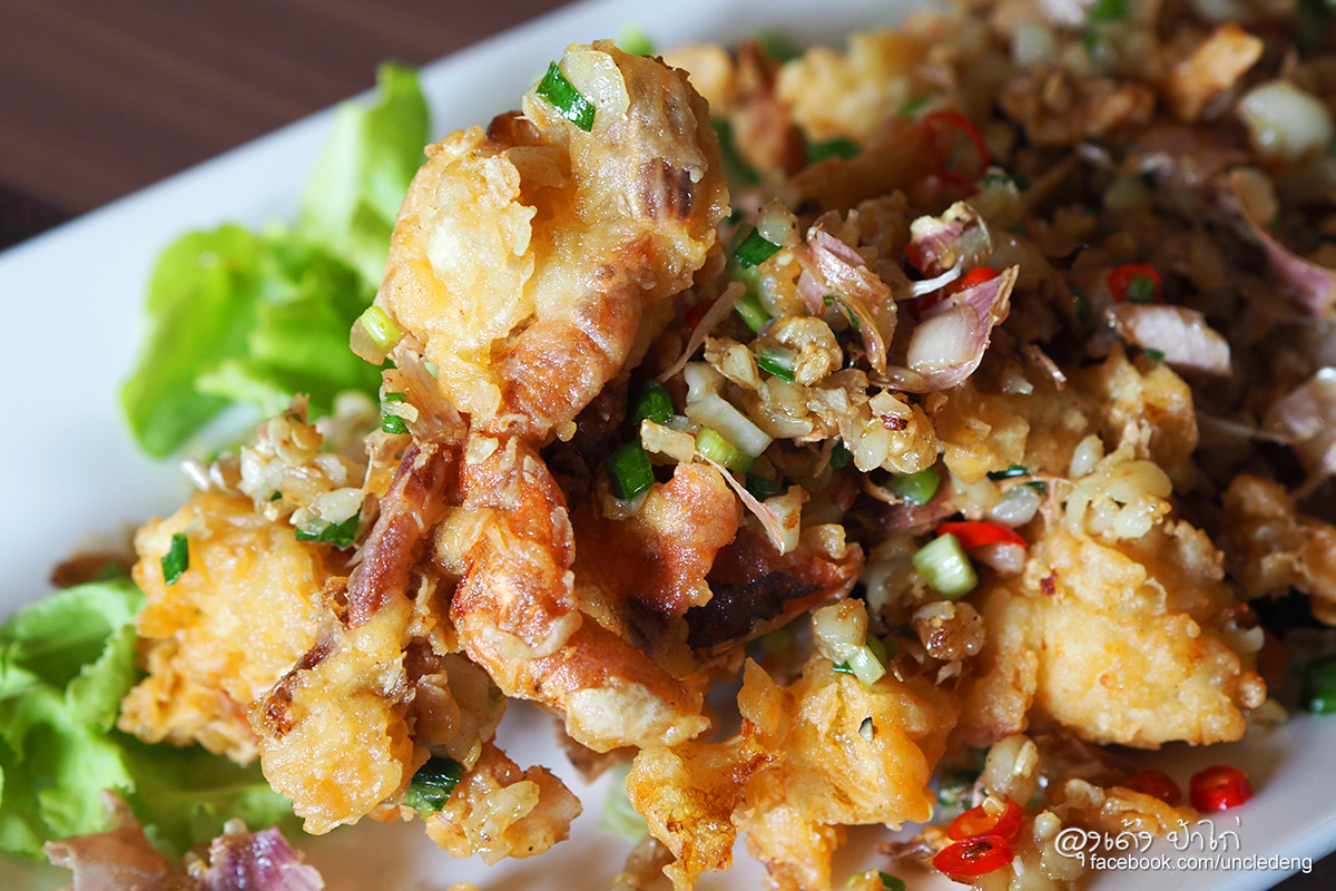 ปูนิ่มทอดกระเทียม... เมนูนี้ที่ Silver House Bistro จะใส่พริกมาด้วย เหมือนเมนูผัดพริกเกลือของฮ่องกง แต่จะไม่เผ็ด (ถ้ามีเด็กกินด้วย ก็บอกทางร้านได้ว่าไม่ใส่พริก) หรือถ้าชอบพริกเยอะๆ ก็บอกกันได้ จานนี้ 250.-