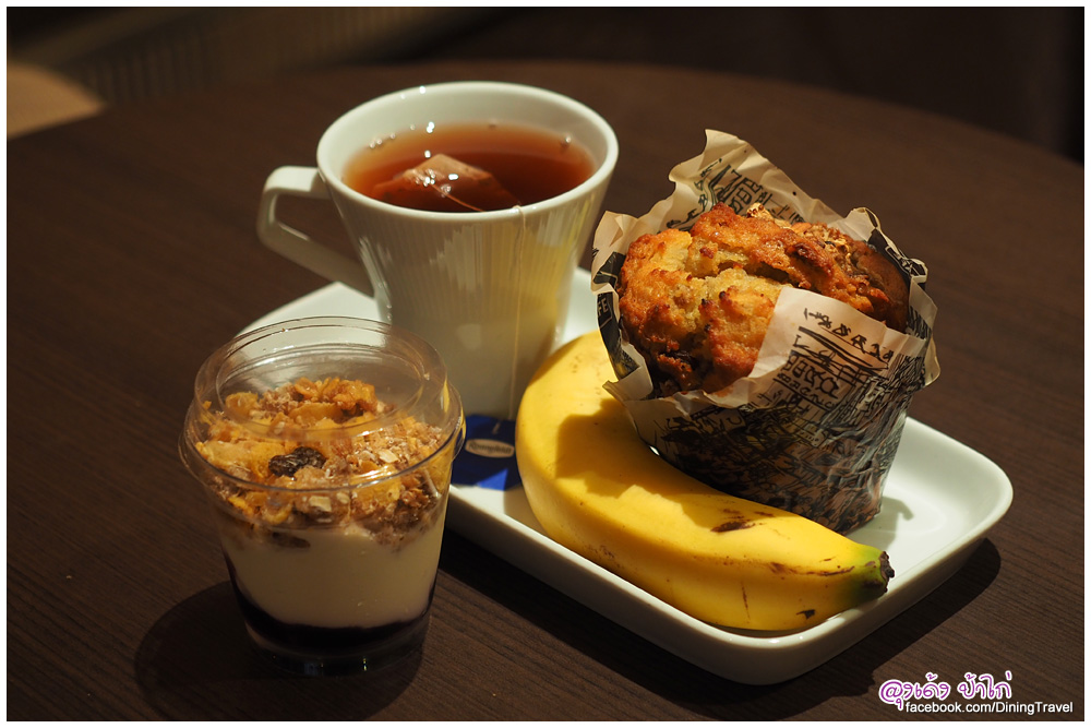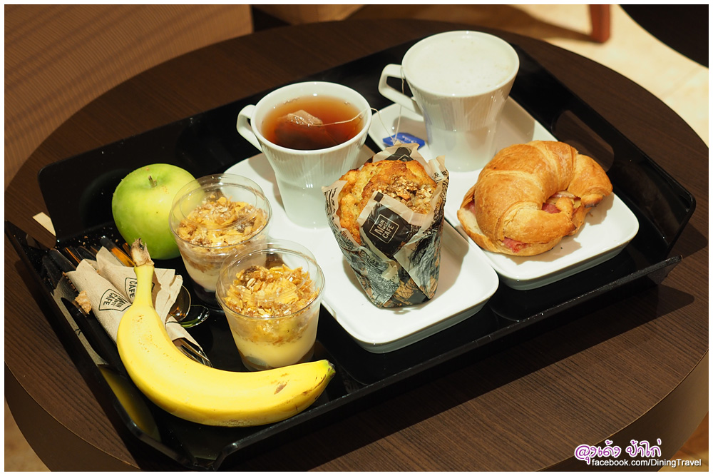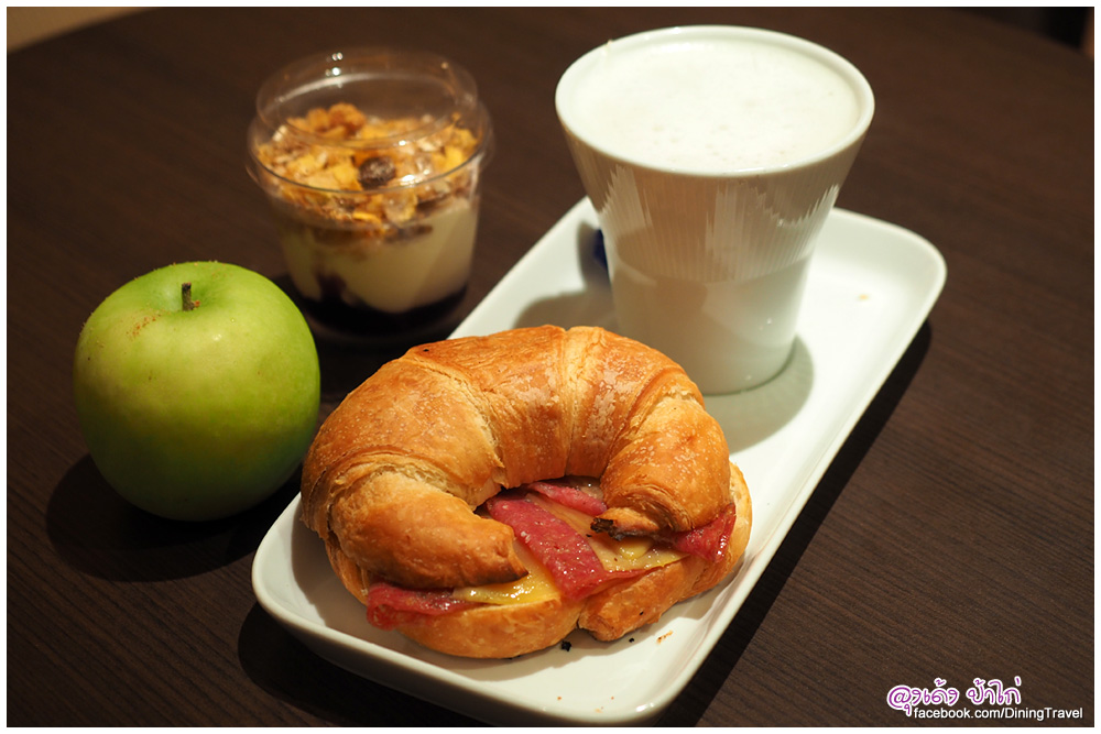 ในชุดจะมี Daily pastry 1 ชิ้น / Yogurt 1 ถ้วย / ผลไม้ หรือ น้ำผลไม้ / ชา หรือ กาแฟ