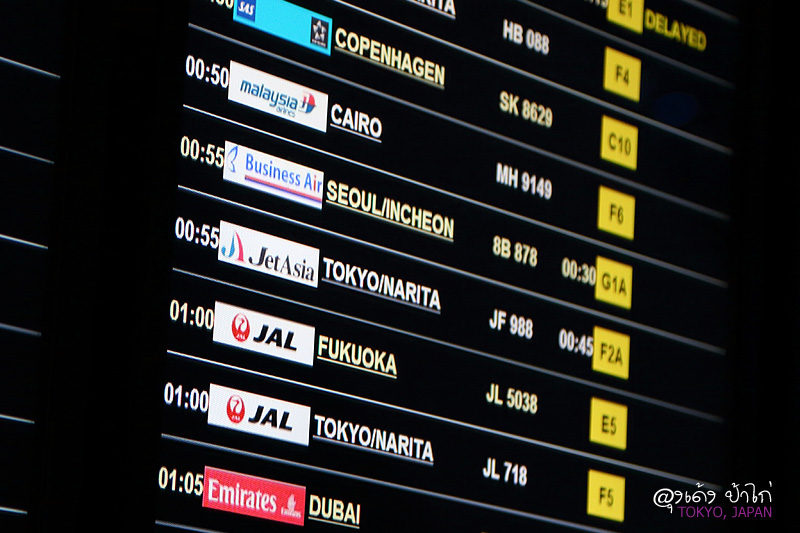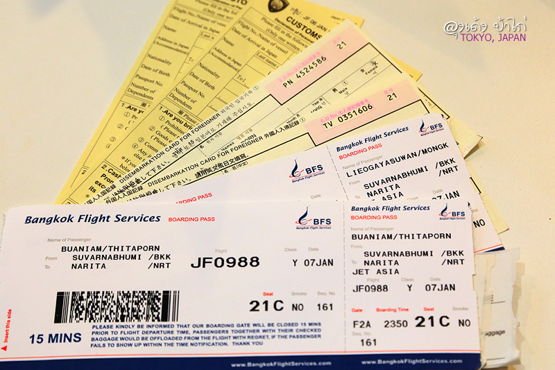 00.45 น. ได้เวลา Boarding พร้อมออกเดินทางสู่ นาริตะ ประเทศญี่ปุ่น โดยสายการบิน Jet Asia เที่ยวบินที่ JF 988
