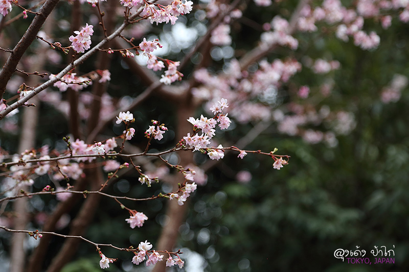 ระหว่างทางก่อนเข้าวัด เจอต้นซากุระกำพลังออกดอก ซึ่งมีเพียงต้นนี้ต้นเดียวเท่านั้นที่เริ่มมีดอก