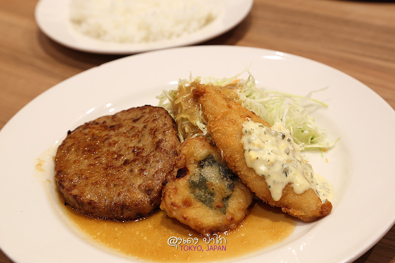 สเต็กเนื้อสับ ใส่ชีส จานละ 523 เยน