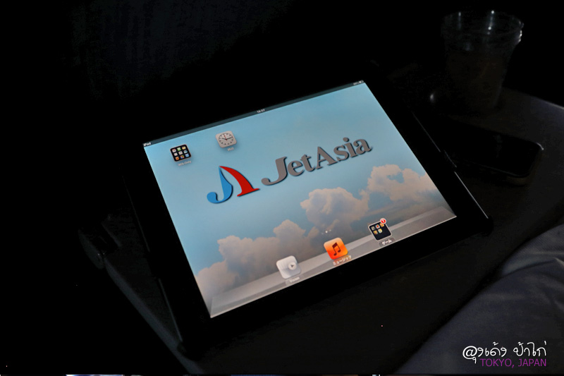บนเครื่องไม่มี PTV ถ้าใครต้องการดูหนัง ฟังเพลง เล่นเกม ทาง JetAsia ก็มี iPad ให้เช่าในราคา 300 บาท