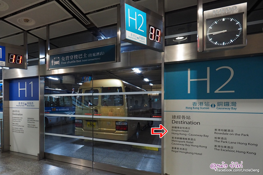 นั่ง Airport Express แล้วต่อด้วยรถรับส่งฟรี Free Shuttle Bus หมายเลข H2
