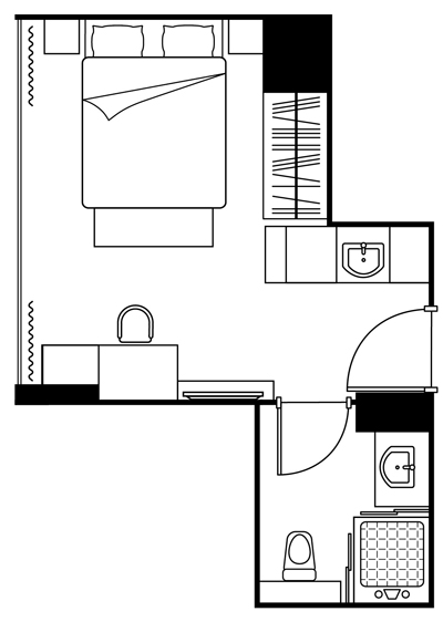 พื้นที่ใช้สอยภายในห้องออกแบบมาได้ลงตัว และใช้พื้นที่ได้เต็มที่