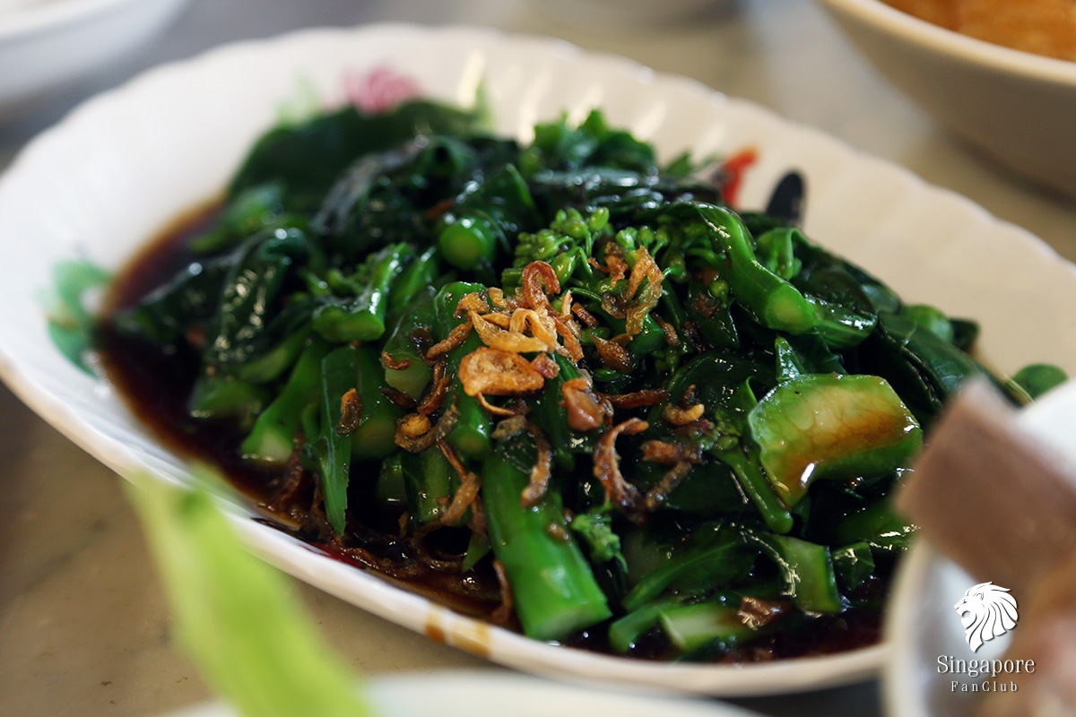 Kai Lan (คะน้าฮ่องกง) จานกลาง ราคา 6.20 เหรียญ - คน มาเลเซีย กับ สิงคโปร์ จะกินหอมเจียว มากกว่ากระเทียมเจียว นะครับ