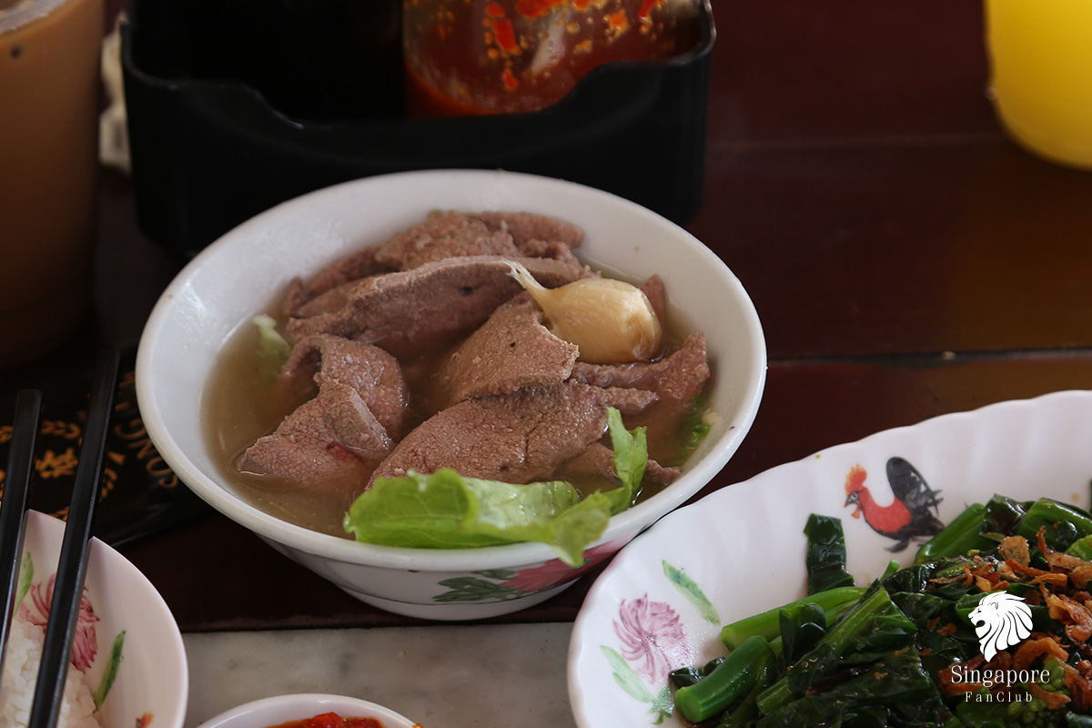 ถ้าเป็นเครื่องใน ลุงเด้งป้าไก่ เลือกกิน Pig's Liver Soup บัก กุ๊ด เต๋ ตับ ราคา 6.00 เหรียญ คนจีนจะมีวิธีการลวกตับให้นุ่ม โดยการล้างตับสด ด้วยน้ำอุ่น เพื่อให้เลือดที่อยู่ในตับออกไปให้หมด ก่อนที่จะนำไปลวกในน้ำร้อน