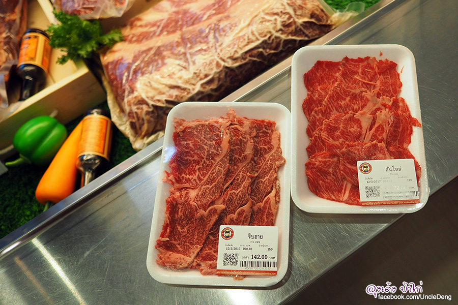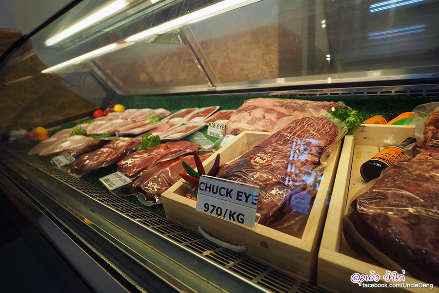 เนื้อโคขุนที่จำหน่ายในร้านมีให้เลือกหลายชนิดจะซื้อแบบยกชิ้นใหญ่ หรือตัดเป็นชิ้นสำหรับทำสเต็กก็มีให้เลือกเช่นกัน ทั้ง Chuck Eye, Rib Eye, T-Bone, Sirloin และเนื้อสไลด์