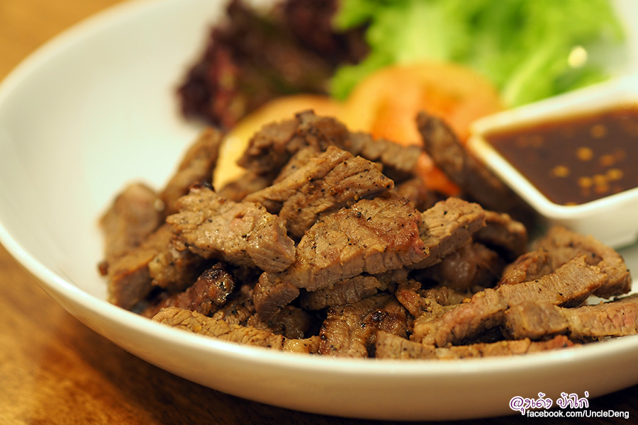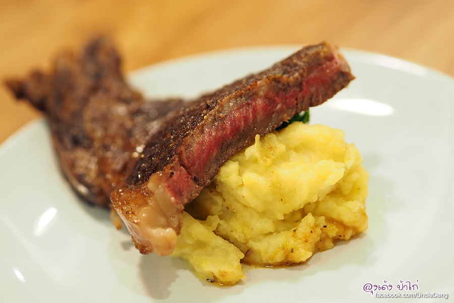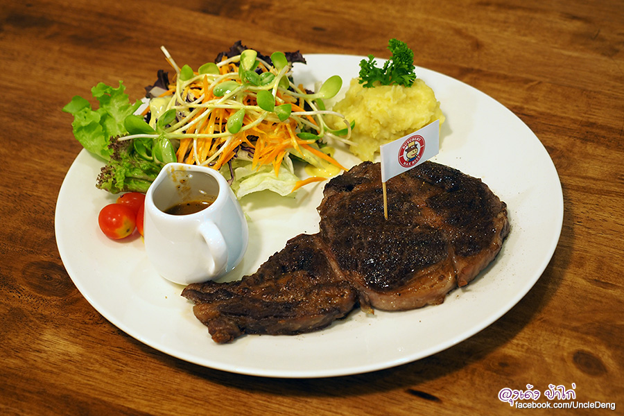 สำหรับเพื่อนๆ ที่ชอบสเต็ก เริ่มต้นที่ Sirloin Stake ราคา 320 บาท แต่ส่วนที่ลุงเด้งโปรดปรานที่สุดคือ Rib eye steak ราคา 450 บาท