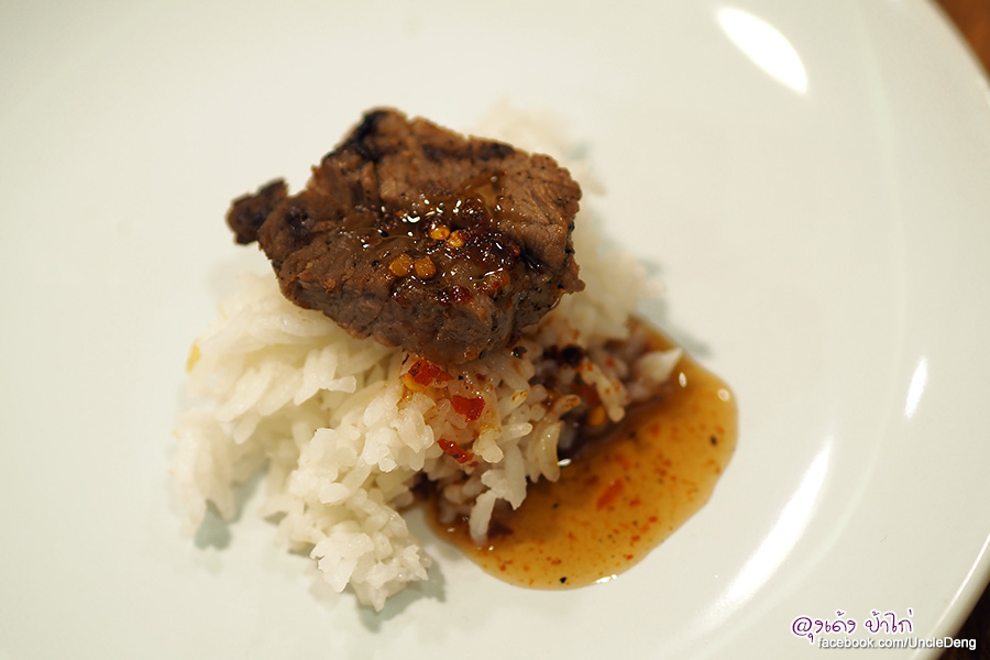 เนื้อย่่างจิ้มแจ่ว ต้องกินกับข้าวเหนียว แต่เสียดายไม่มีข้าวเหนียว เลยต้องสั่งมากินกับข้าวสวย ก็ยังอร่อยอยู่นะครับ